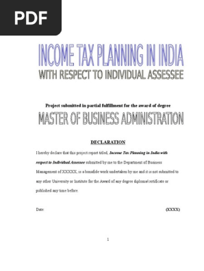 Income Tax Planning In India With Respect To Individual Assessee Mba Project 215080540 Pdf Capital Gains Tax Expense